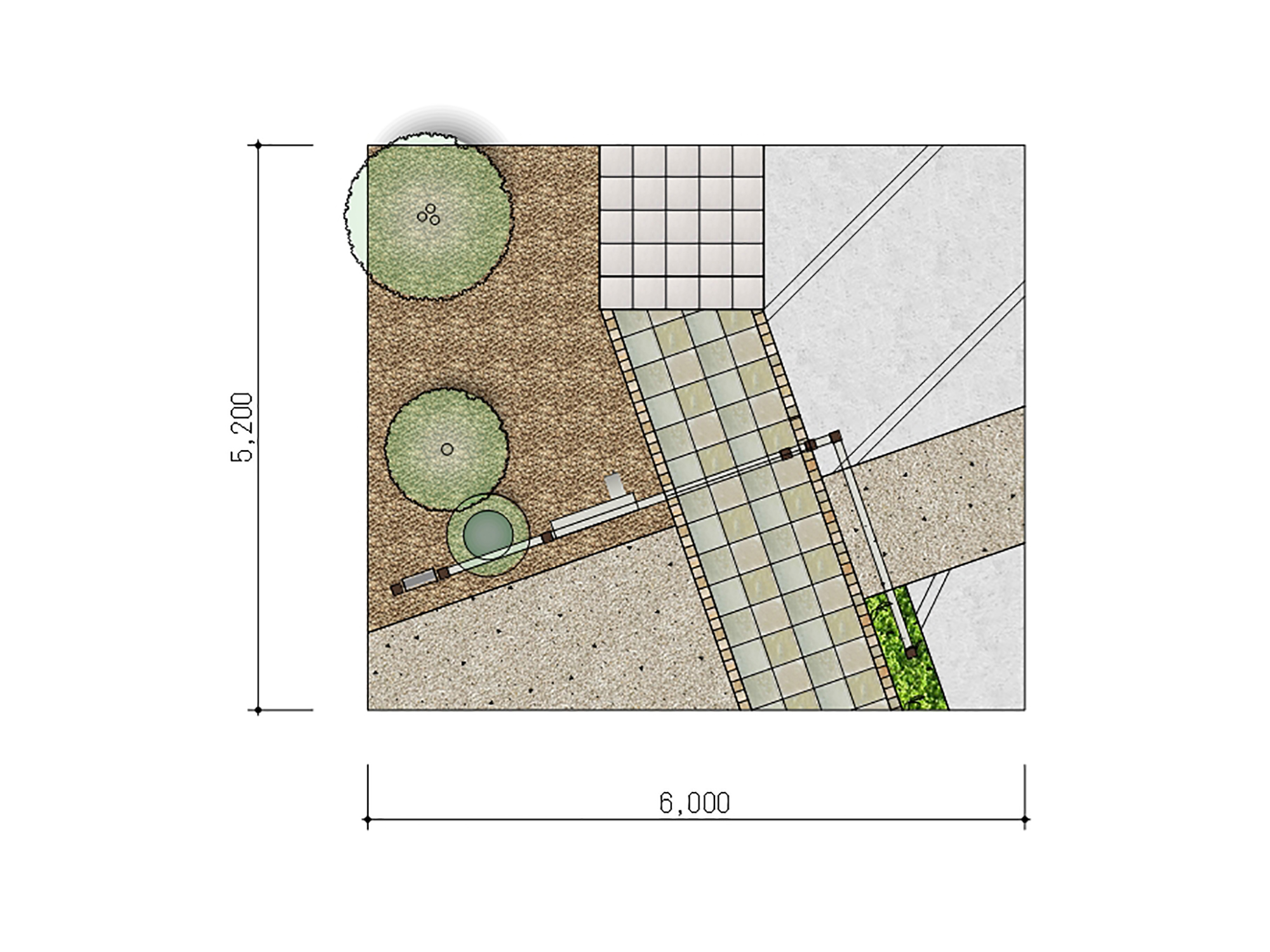 【デザイン説明】 柱と桁材のアーチで遊びゴコロのあるファサードプランです。
