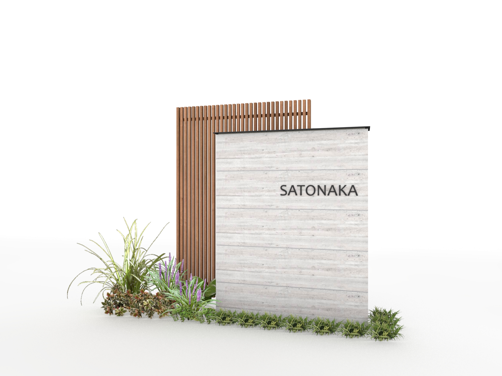 杉板目コンクリートを忠実に再現した壁面用タイルを使用した門柱です。