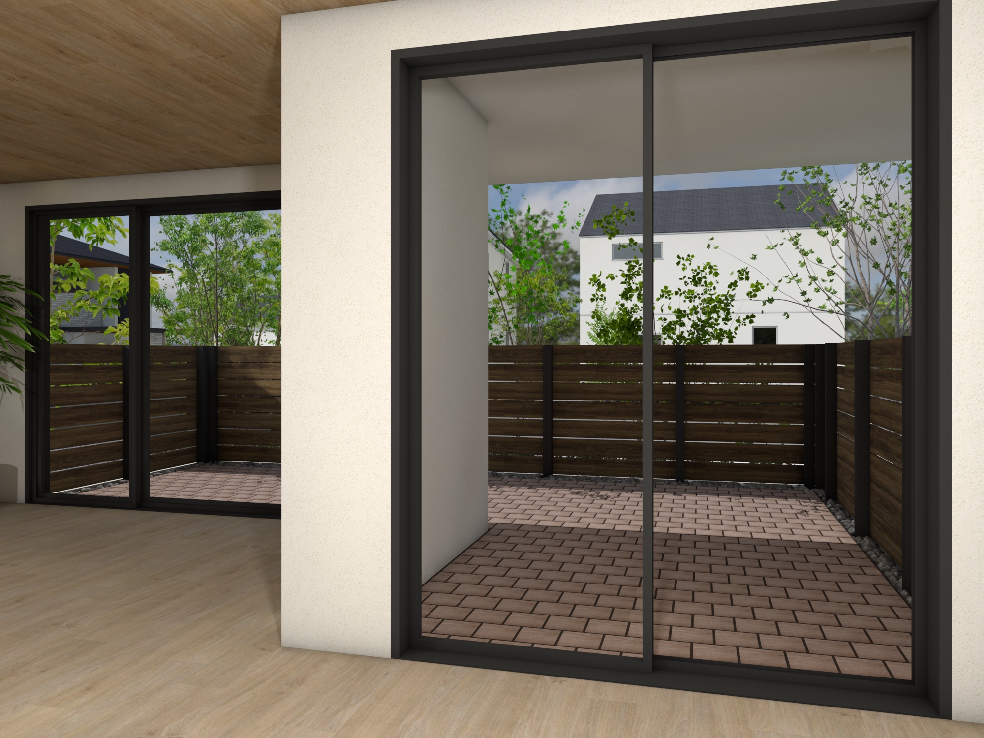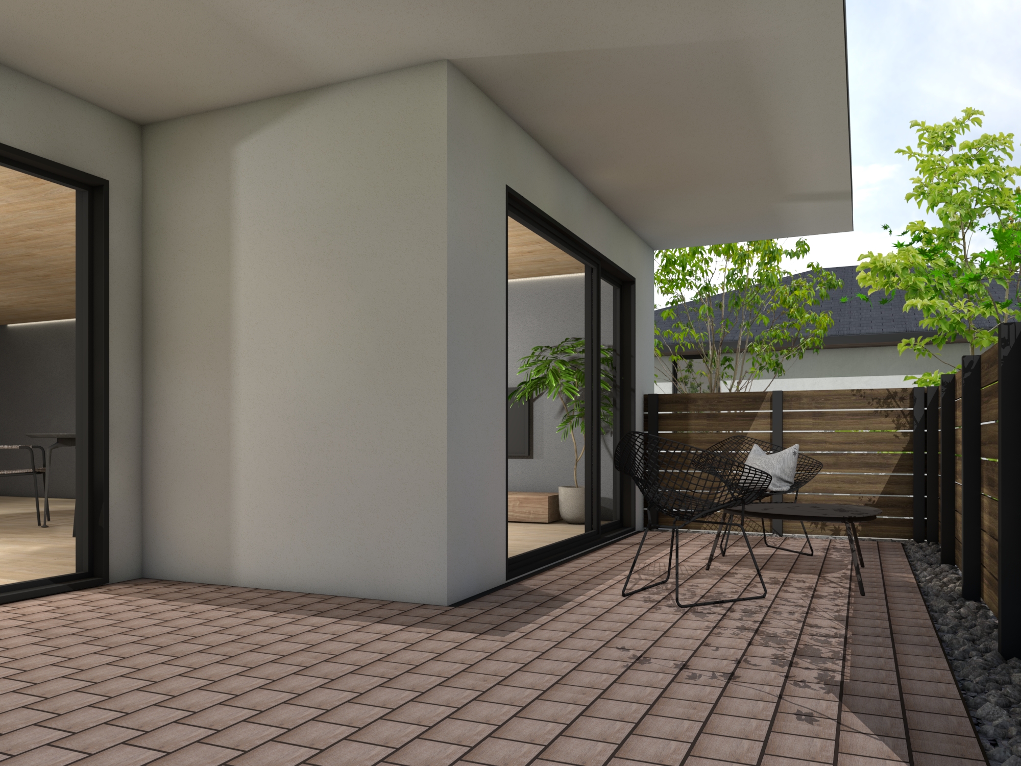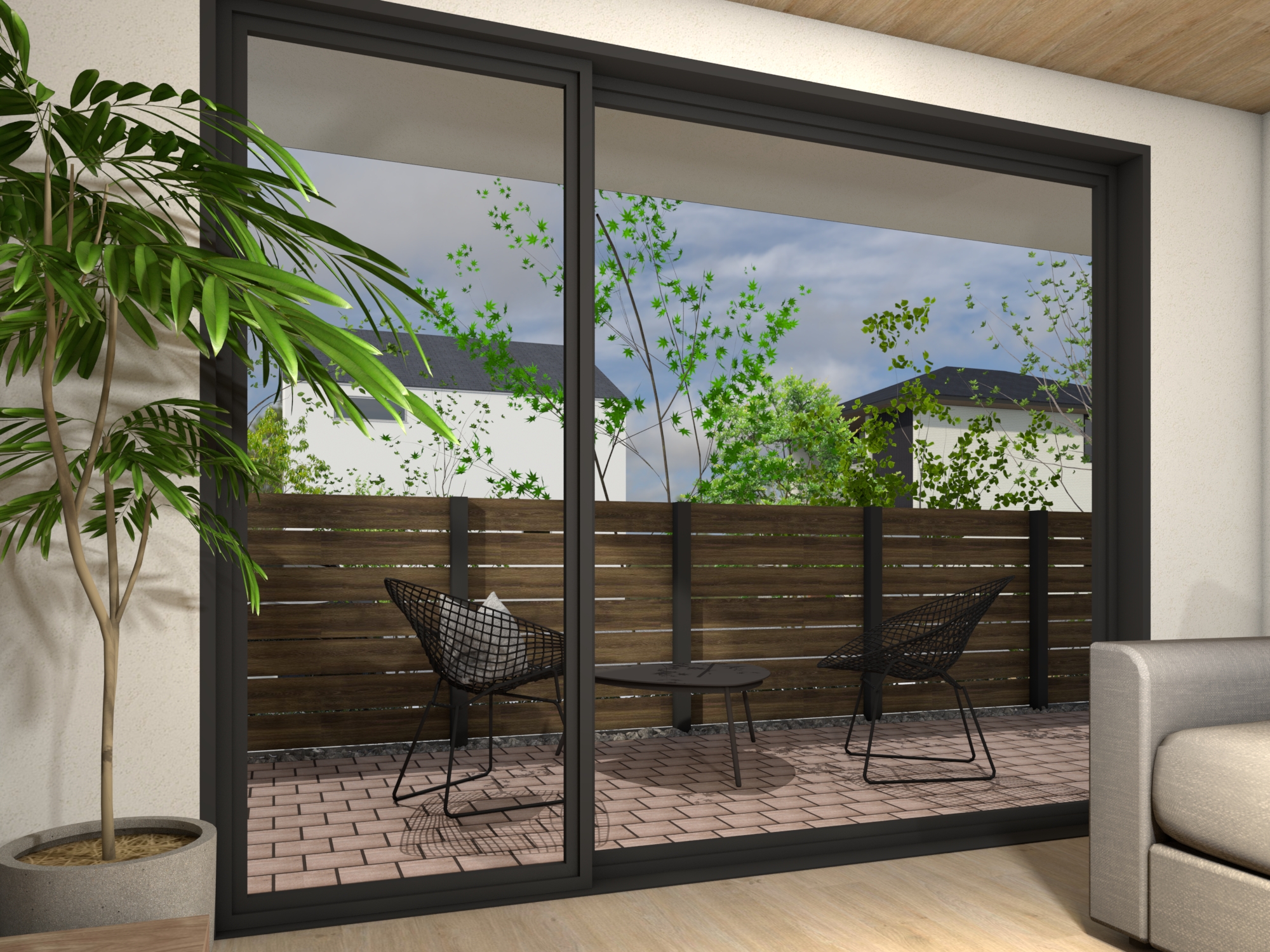 ベランダやバルコニーに「ビートブロック」を採用したアウトドアリビング。