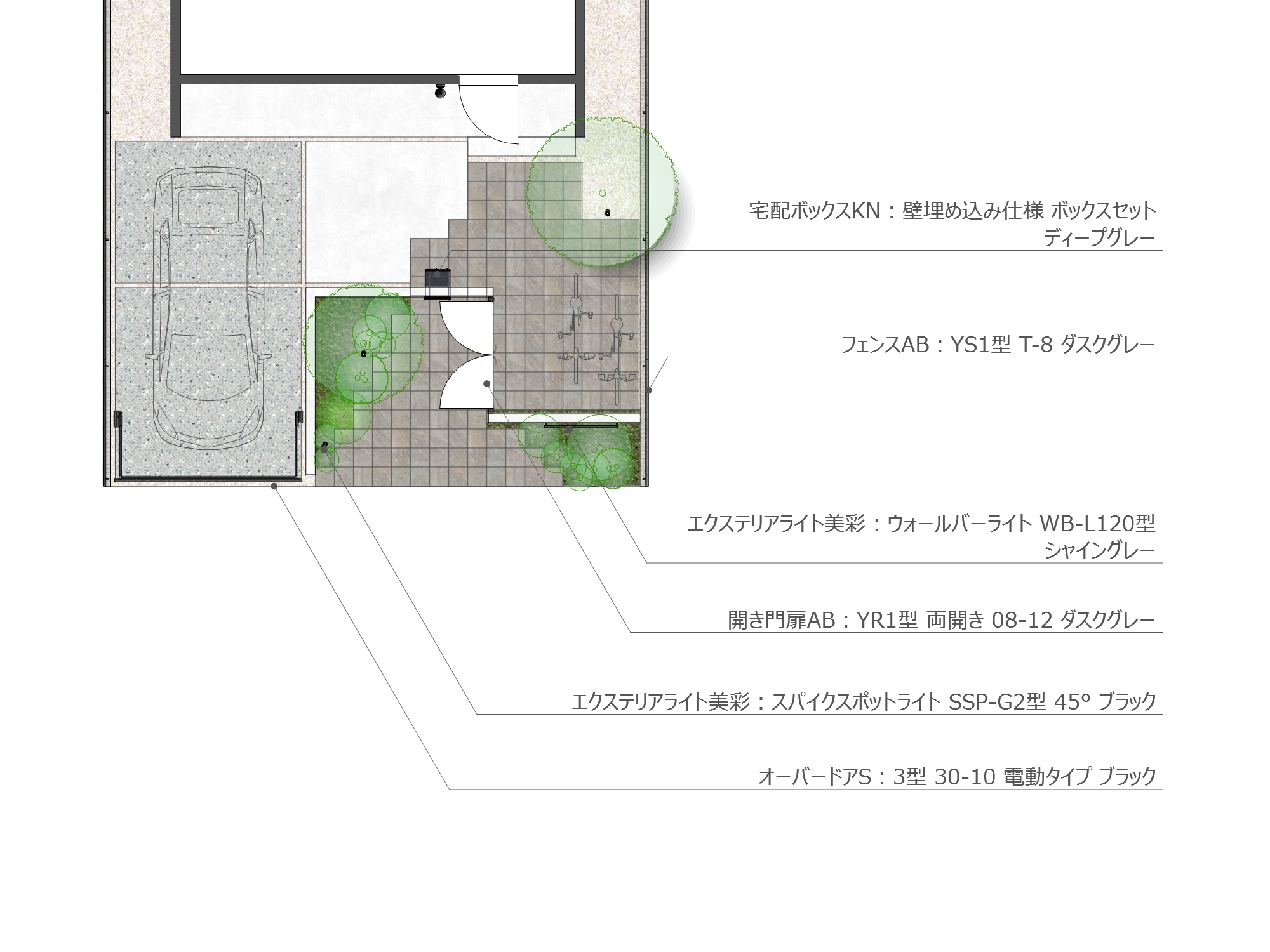 夜はエクステリアライト美彩を加えることでライトアップされた美しいアプローチとなり防犯対策にも繋がります。