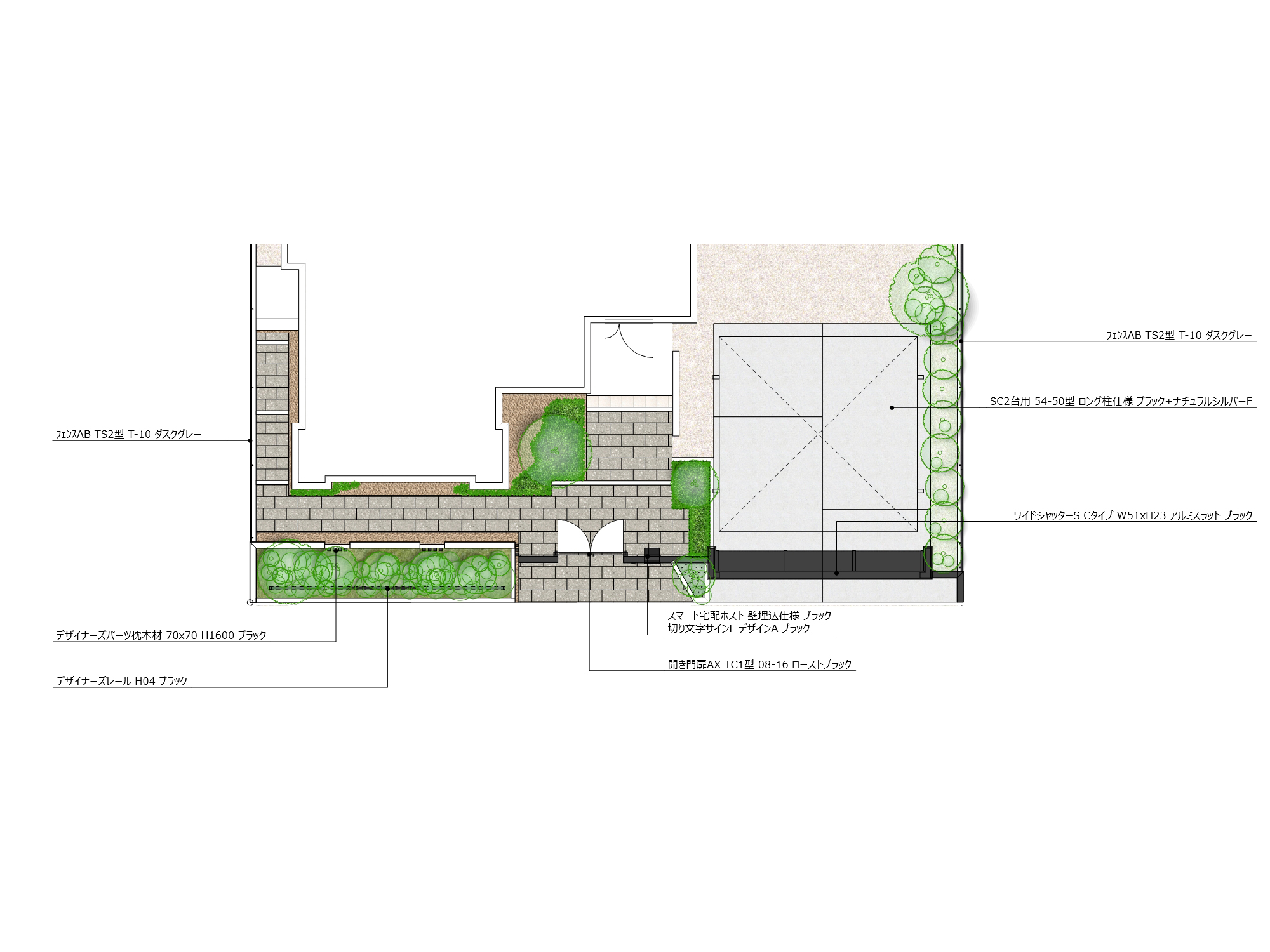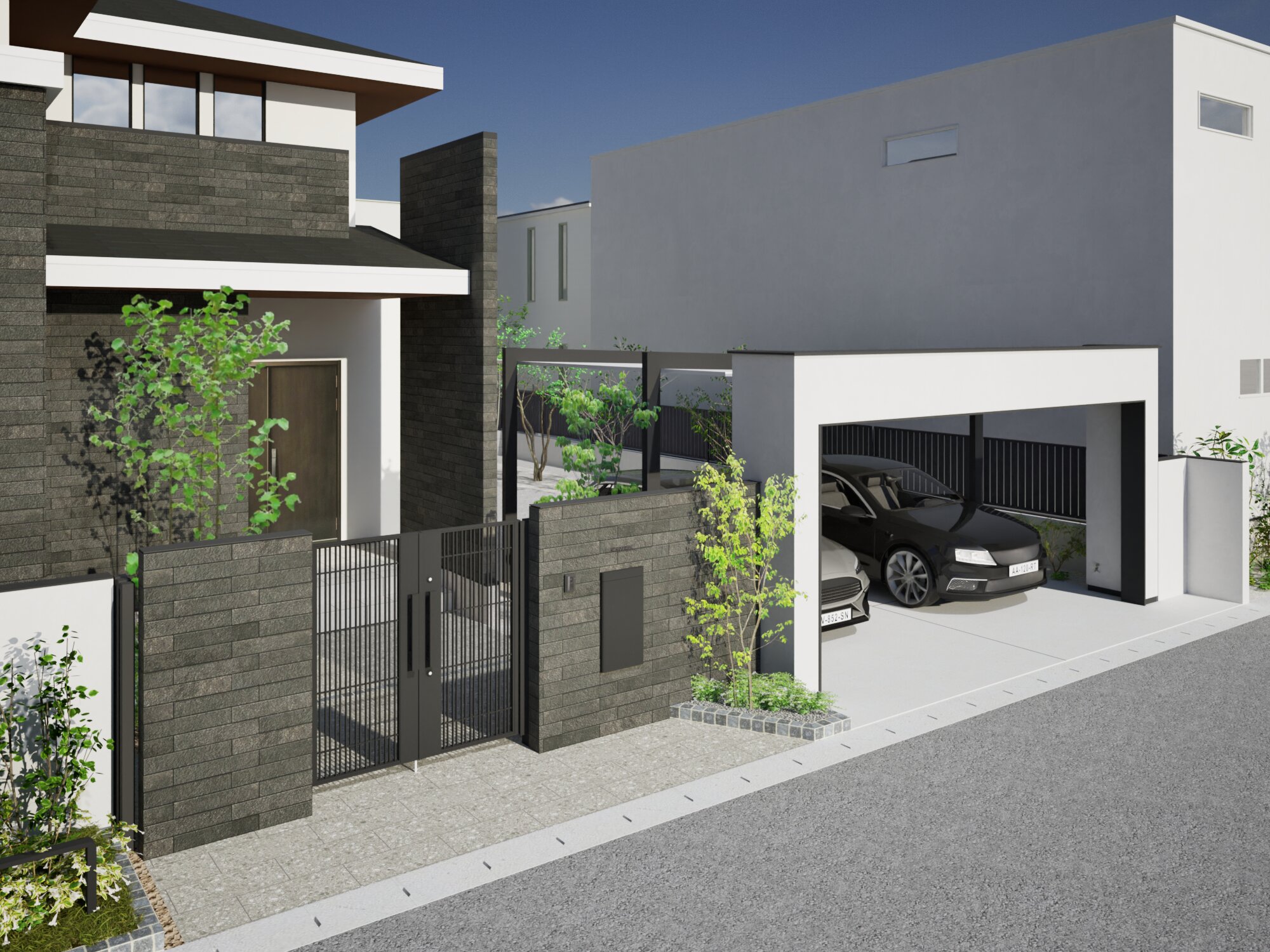 「開き門扉AX(鋳物デザインTC1型)」を採用したクローズプラン。