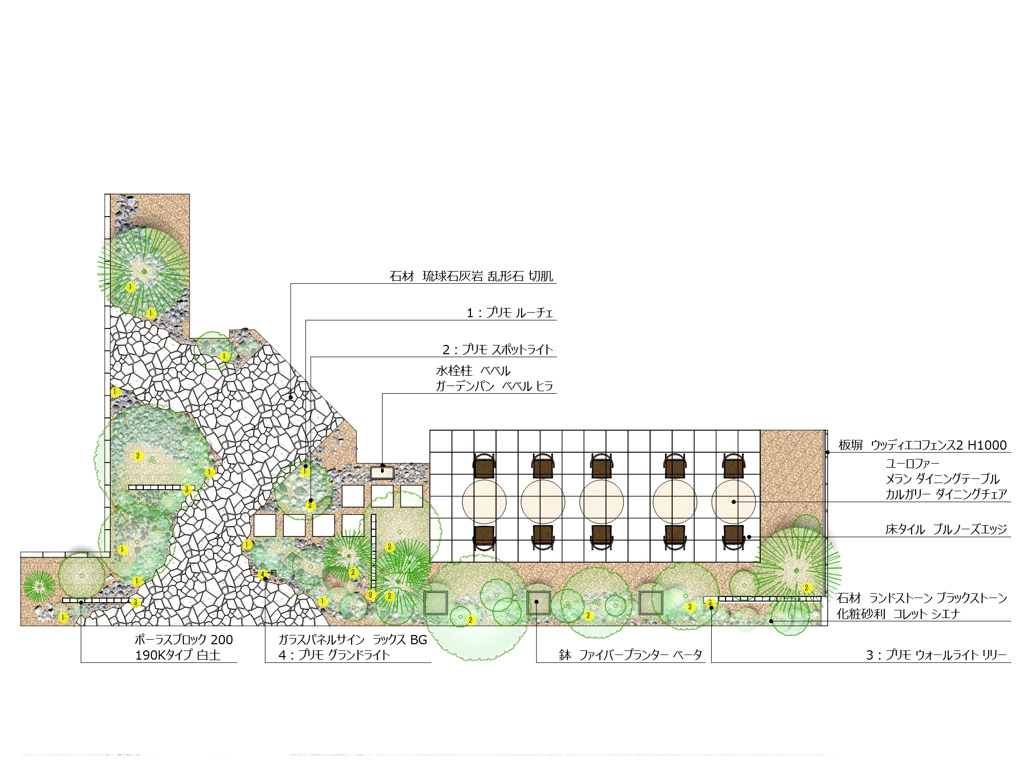 ク200」を採用。柱サボテン、フェニックス・ロベレニー、ココスヤシ、ソテツといった南国植物をシンボリックに